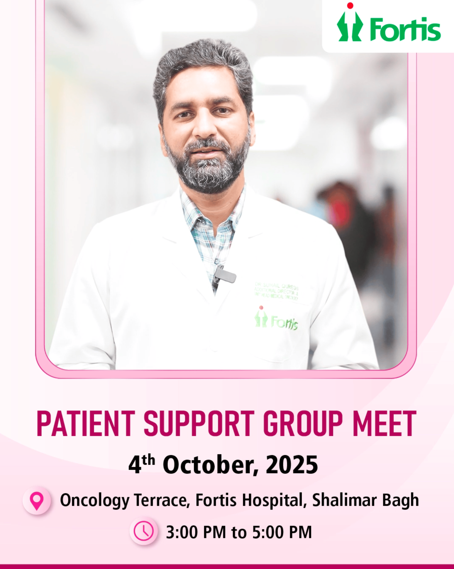 Dr. Suhail Qureshi warmly invites you to be a part of the Breast Cancer Patient Support Group Meet this Breast Cancer Awareness Month. 🌸